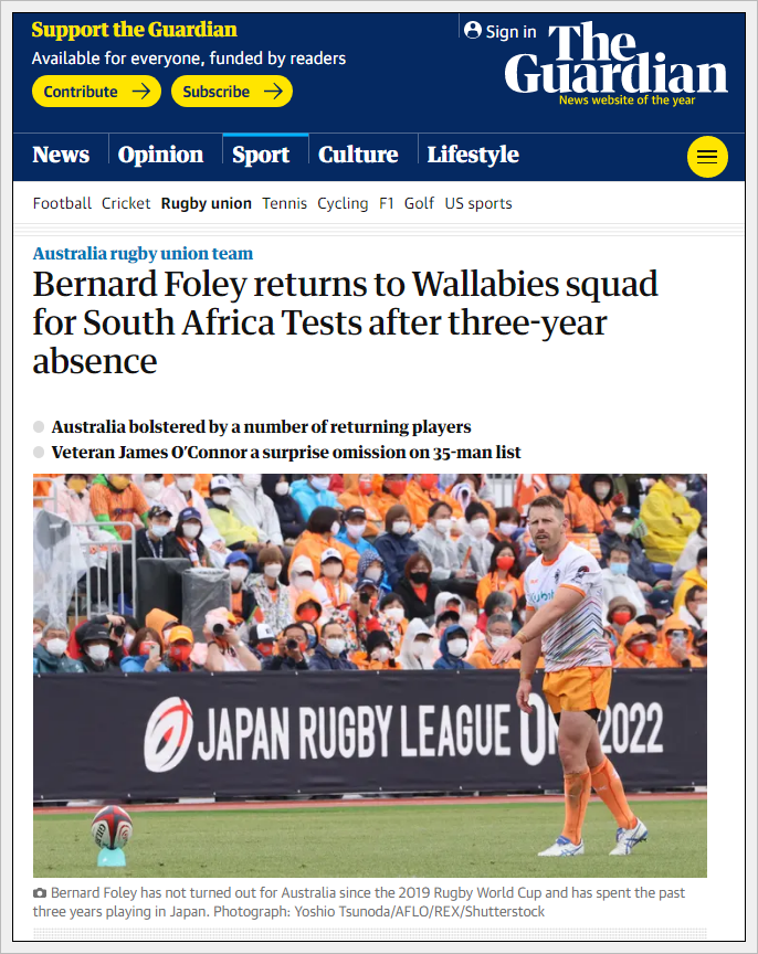 何といっても2019RWC以来のバーナード・フォーリーの復帰が嬉しいですね