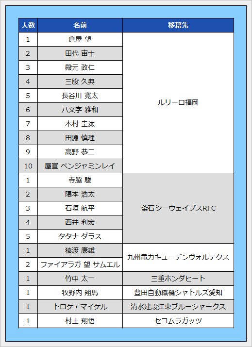 8/27のボクス戦に向けてワラビーズのスコッドが発表されました