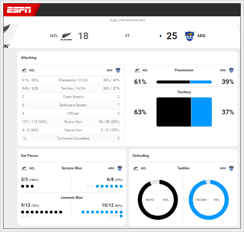 試合時間のほとんどオールブラックスがロス・プーマス陣内で攻撃した