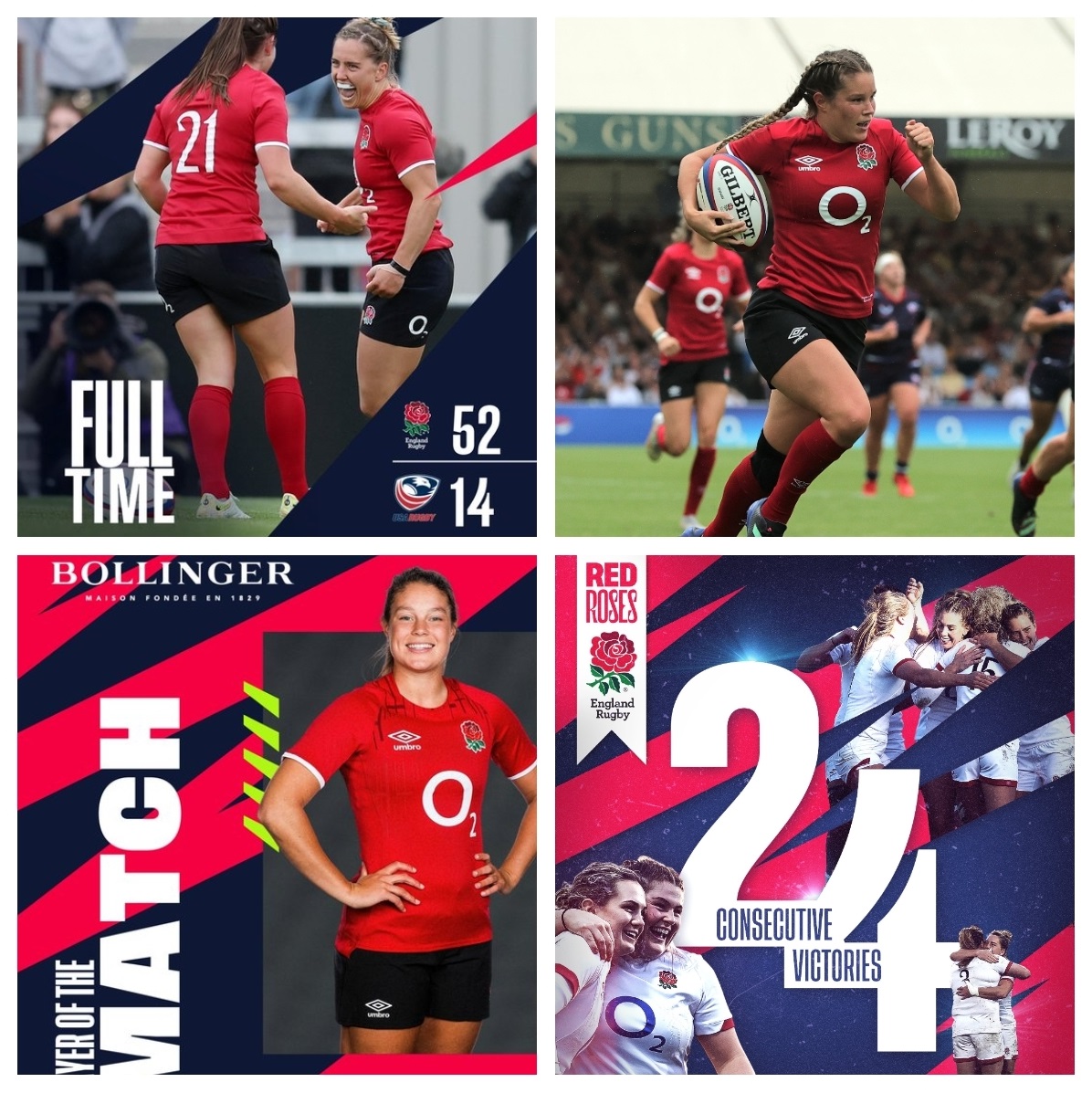 前の試合、デリバレイトでシンビンになり泣いていたエレーナ・ローランド(CTB)がハットトリックの大爆発