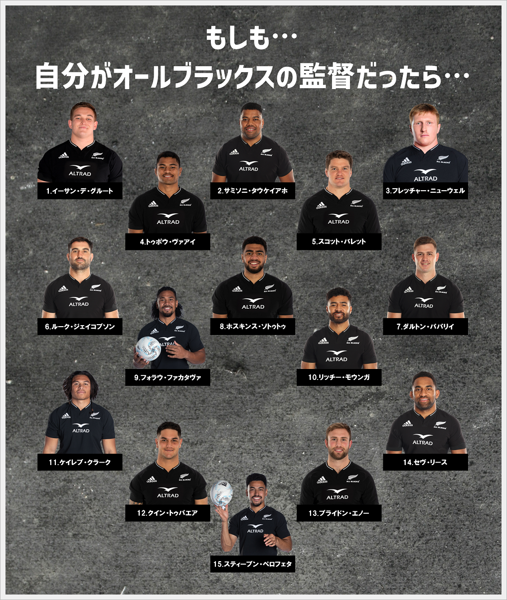 大きな連敗しないとメンバー、スタッフ交代はしないだろうから、これでオールブラックスはワラビーズ戦も同じメンバーで来るんだろうね