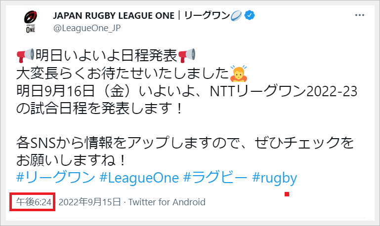 自分がツイートした50分後にリーグワンからのツイートがありました