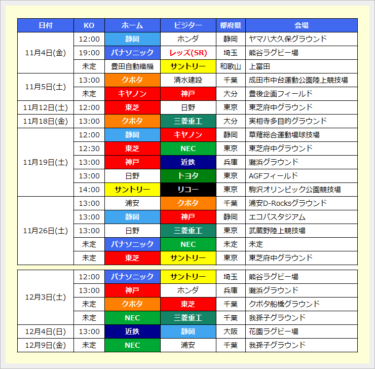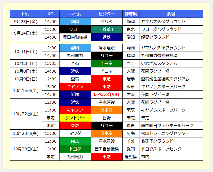 Div.1だけですが9/23(金)以降の情報をまとめてみました