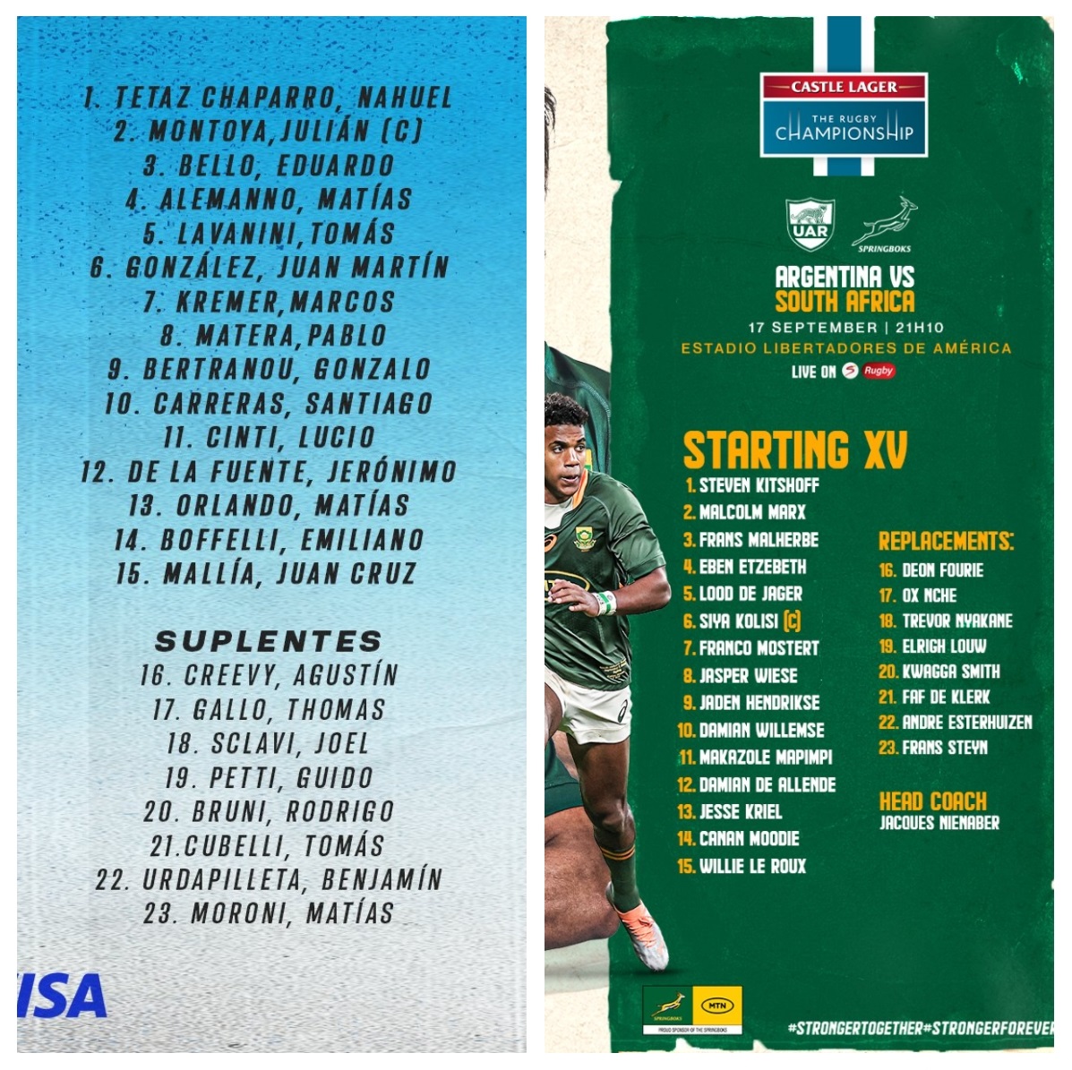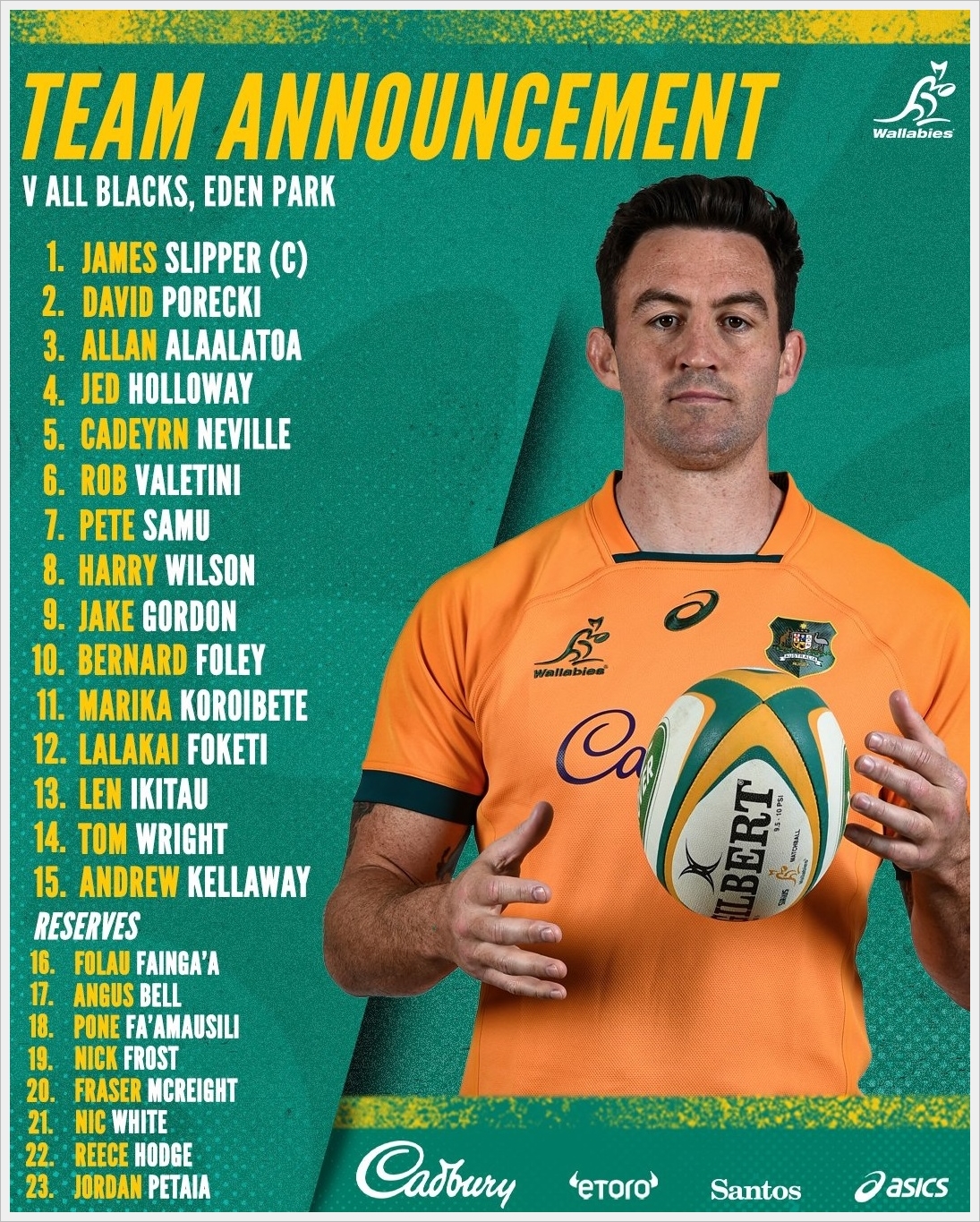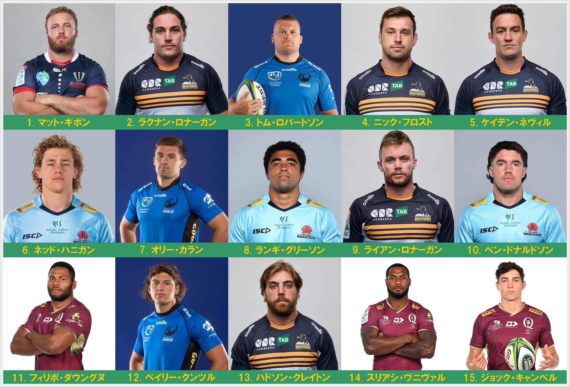 1.ギボン、2.ロナーガン、4.フロストはTRCアルゼンチン戦のリザーブ