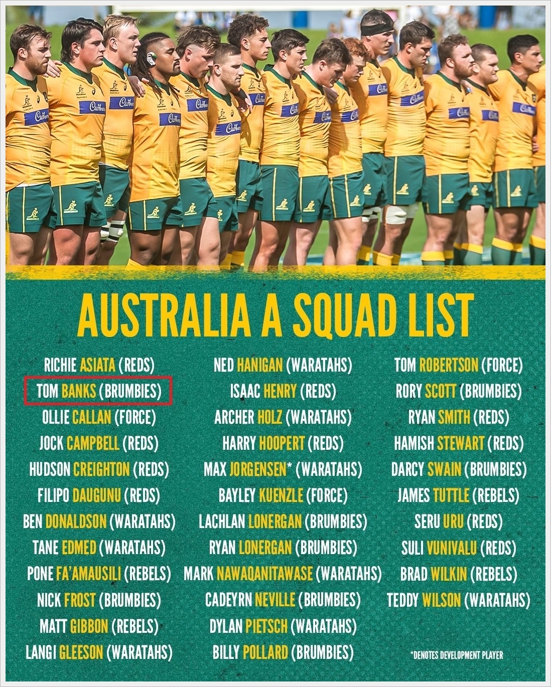 JAPAN XVと戦うオーストラリアAのメンバーにホンダに加入するトム・バンクスの名前がありましたね