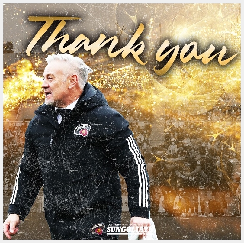 「この度、家庭の事情でニュージーランドに戻ることになりました。サンゴリアスと働く機会を得られたことに大変感謝しています。チームのみんなの今後の活躍を願うとともに、関心を持って来シーズンを見守りたいと思います。」