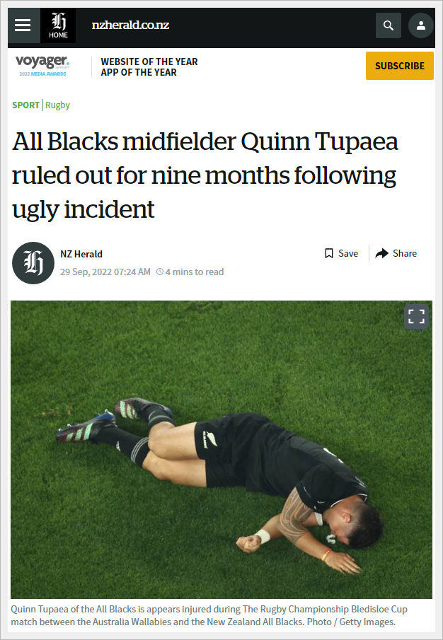 TRCで負傷したトゥパエア