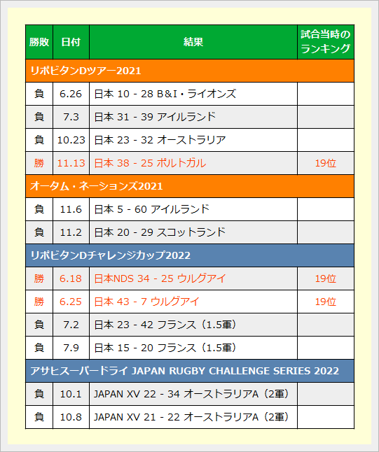 勝:日本 43 - 7 ウルグアイ(当時19位)