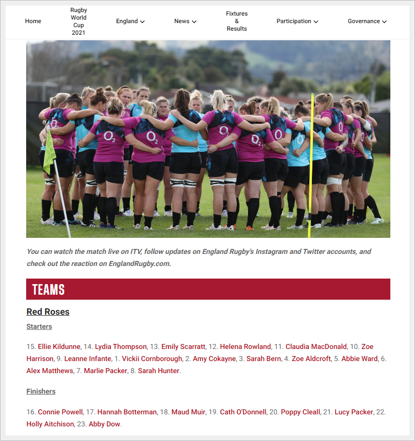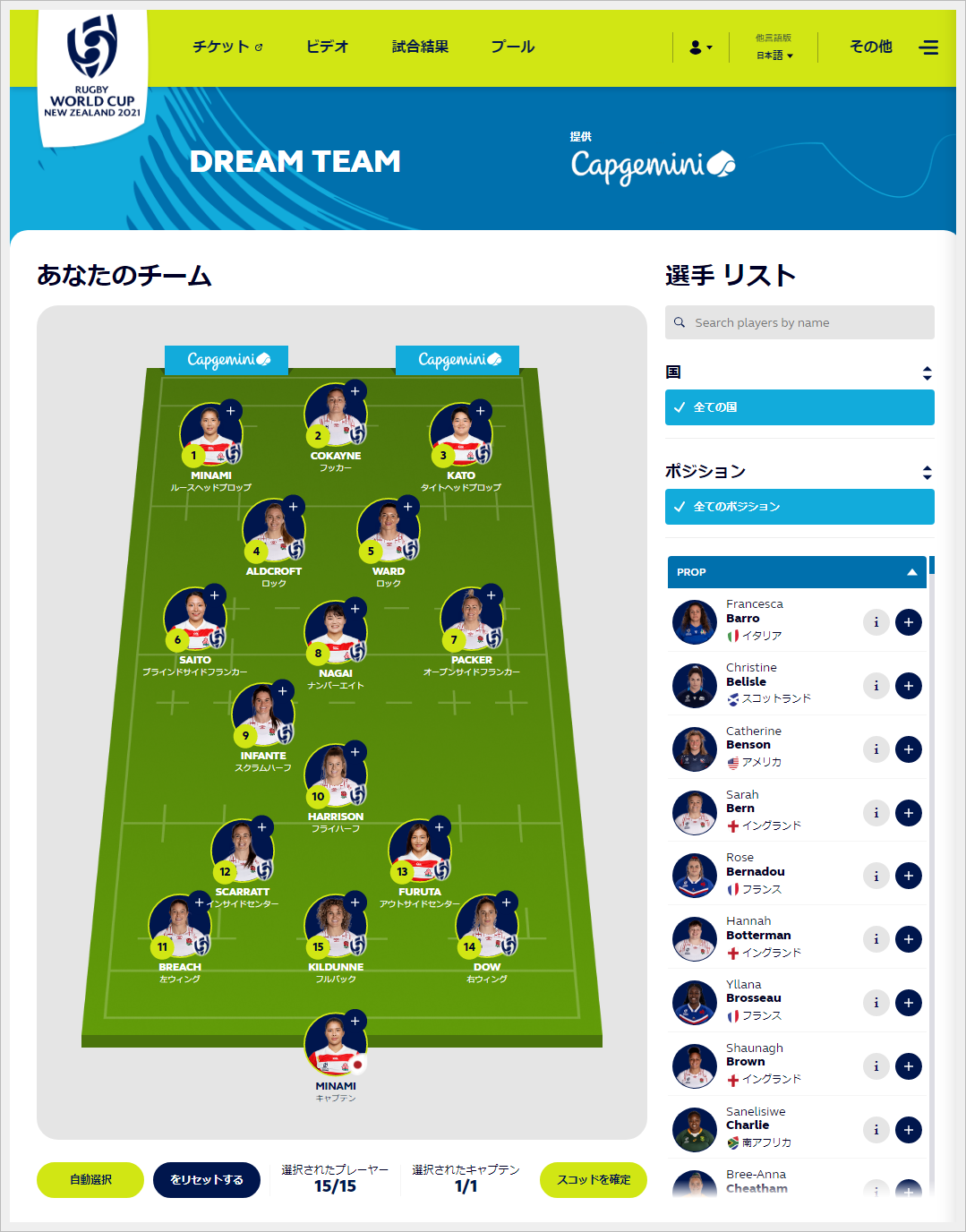 レッドローズはジェシカ・ブリーチ(WTB)以外はベストメンバー