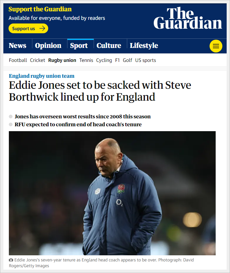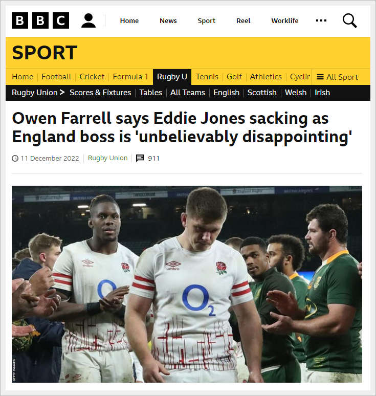 「信じられないほど残念だ。エディーは私がこれまで受けた中で最高のコーチの1人だったからその点で非常に感謝してる。私はクラブでも国際レベルでもあまり変化を経験したことがないんだ。こういう変化を経験するのは楽しいことではないよ」