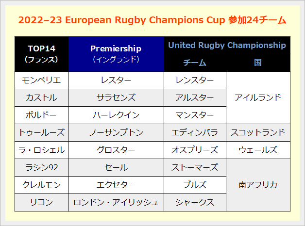 ERCCはTOP14、Premiership、URCの上位8チームずつが5月中旬まで優勝を争うトーナメント戦
