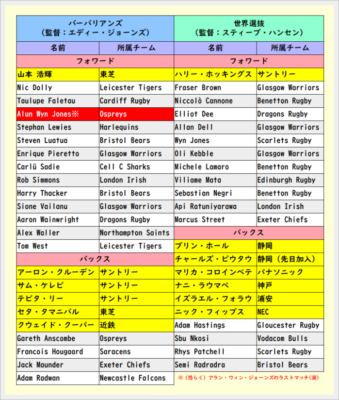 先日のバーバリアンズ v 世界選抜、楽しかったですね
