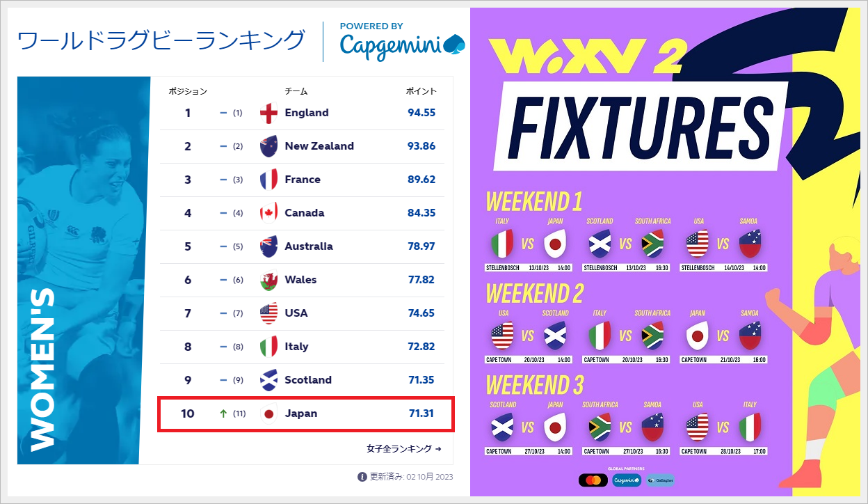 最新の世界ランキングでサクラ15は今年4月以来の10位(過去最高位)に浮上