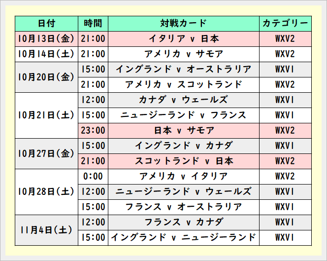 サクラ15はアメリカ/南アフリカと同じPOOL Aに入り、POOL Bのイタリア/サモア/スコットランドと戦う