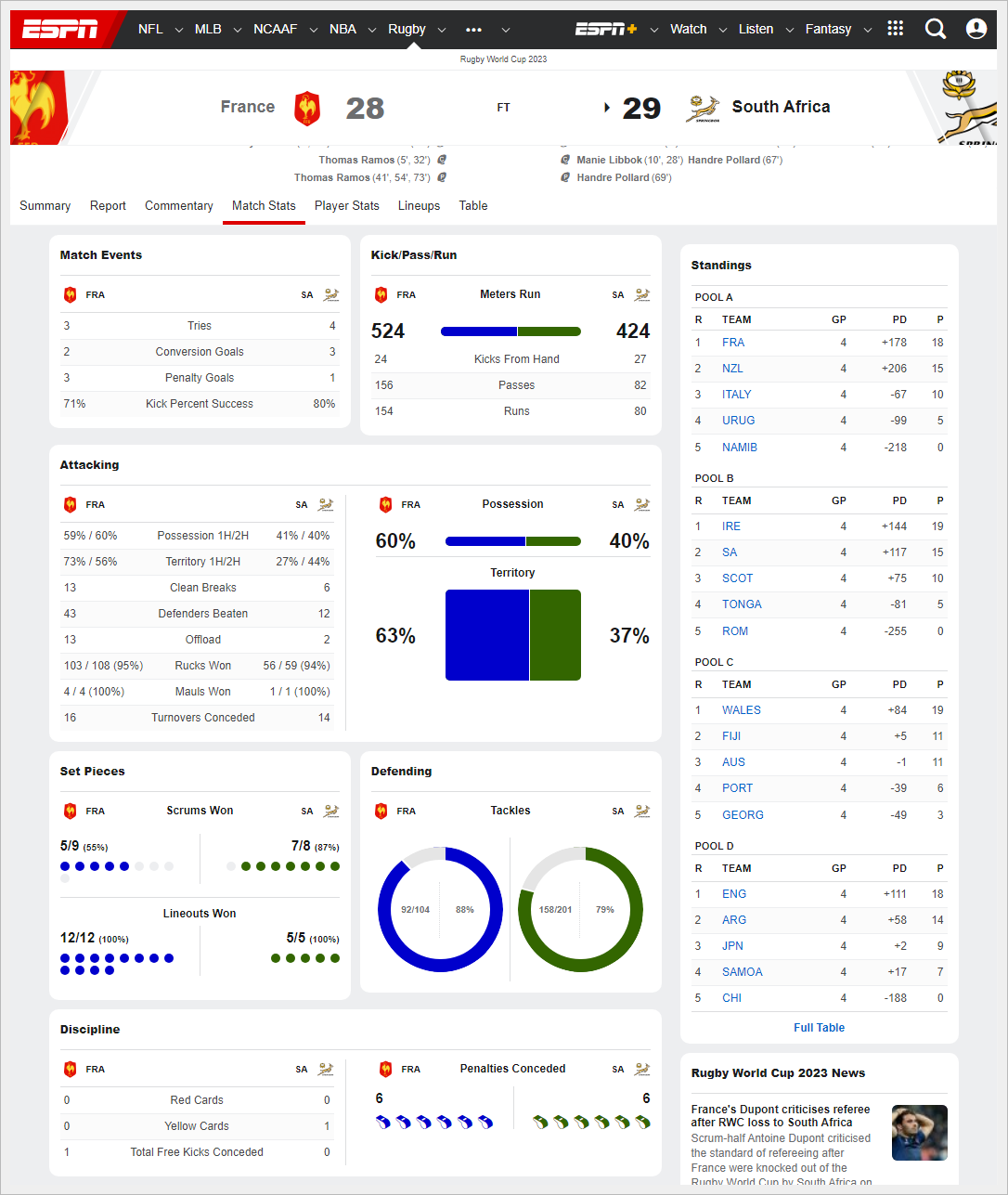 驚くべきはこの時の南アフリカのメンバー23人の内15人が未だに今大会のメンバーに残っていること