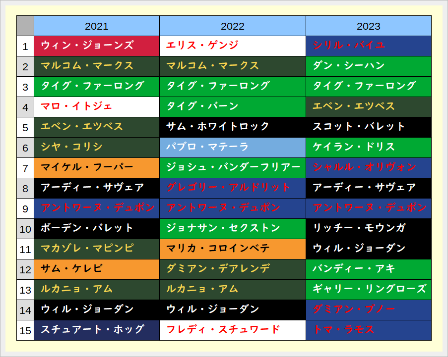 ファーロング / デュポン / ジョーダンの3年連続は凄すぎですね
