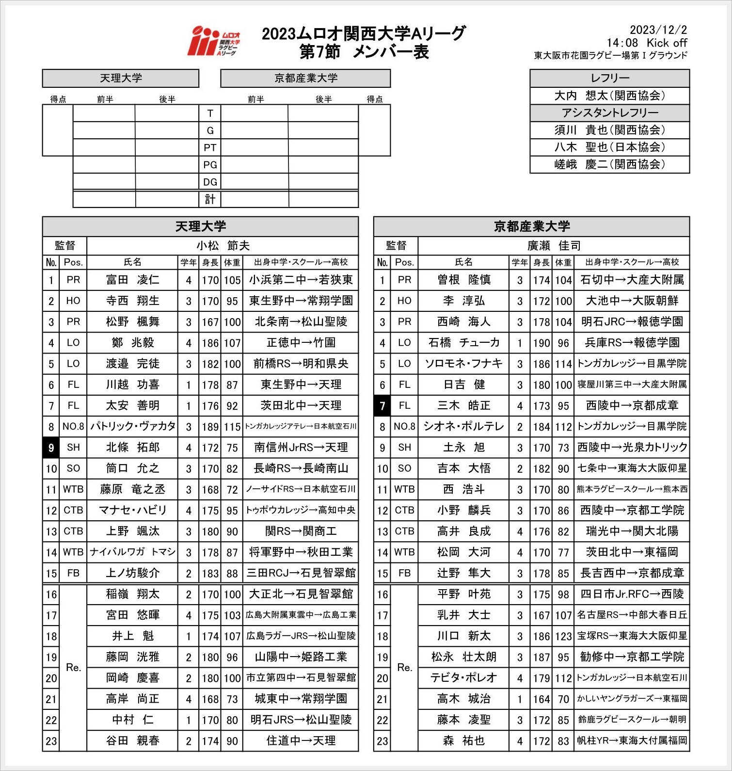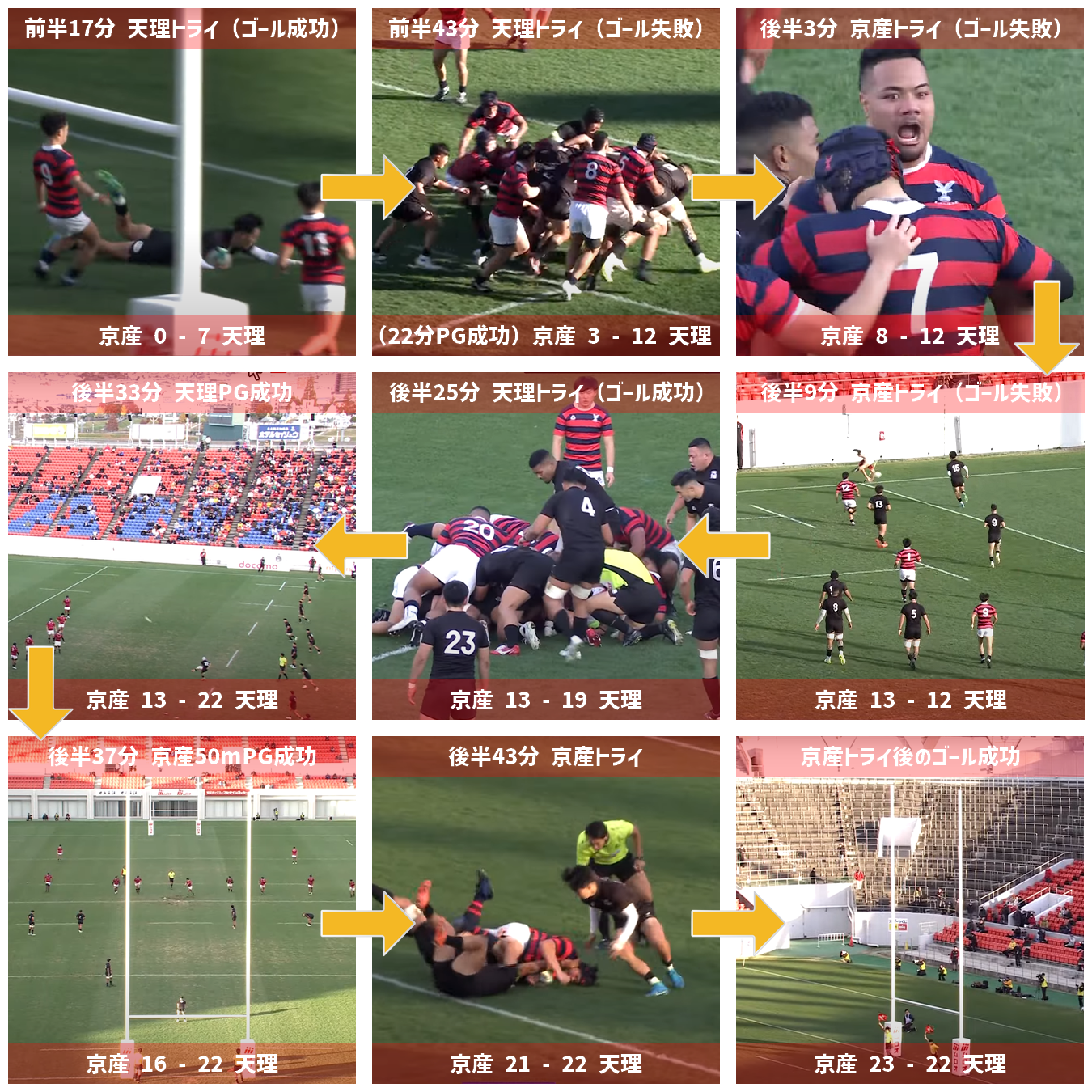 天理の注目はNo.8ヴァカタの突破とSH北條主将&SO筒口のハーフ団の試合運び