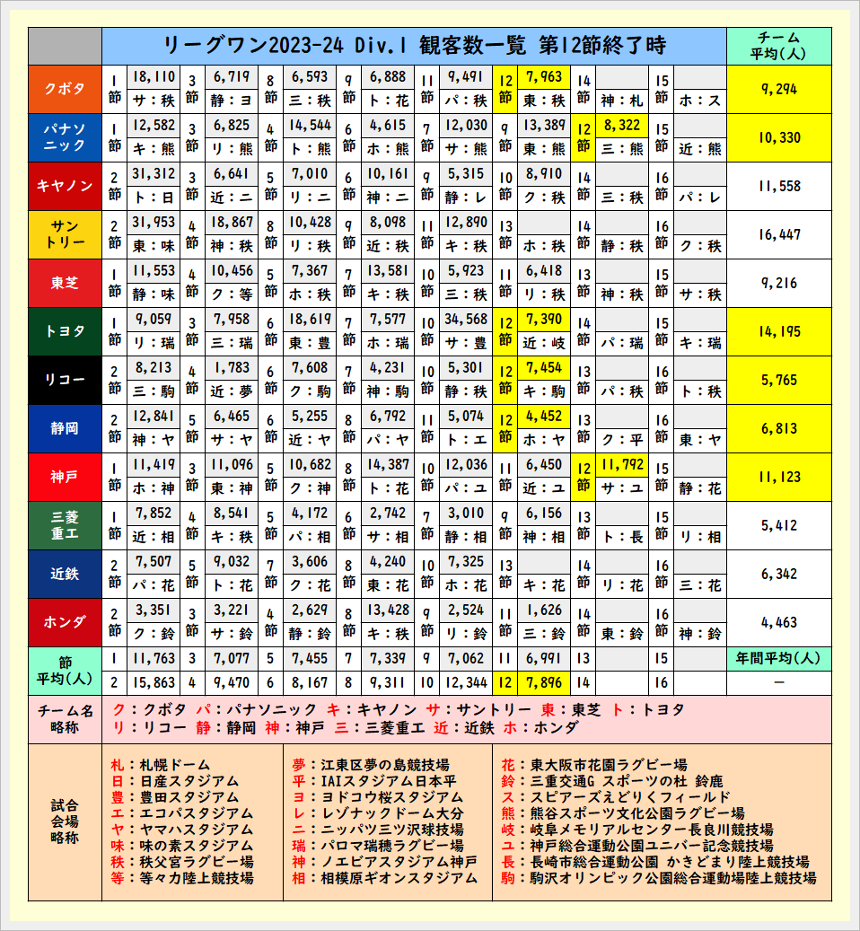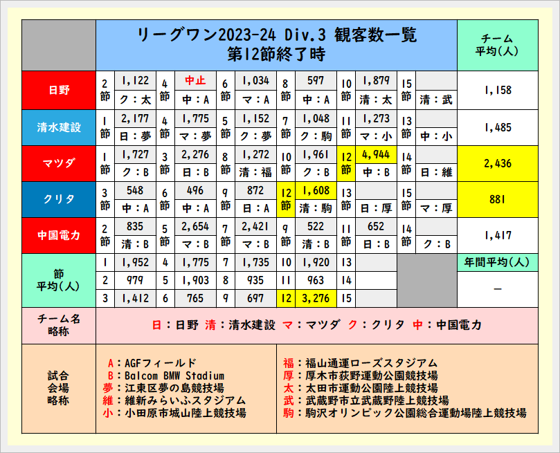 ちなみに以前もツイートしましたがDiv.2の平均観客数の最高はレッドハリケーンズの「6,095人」です
