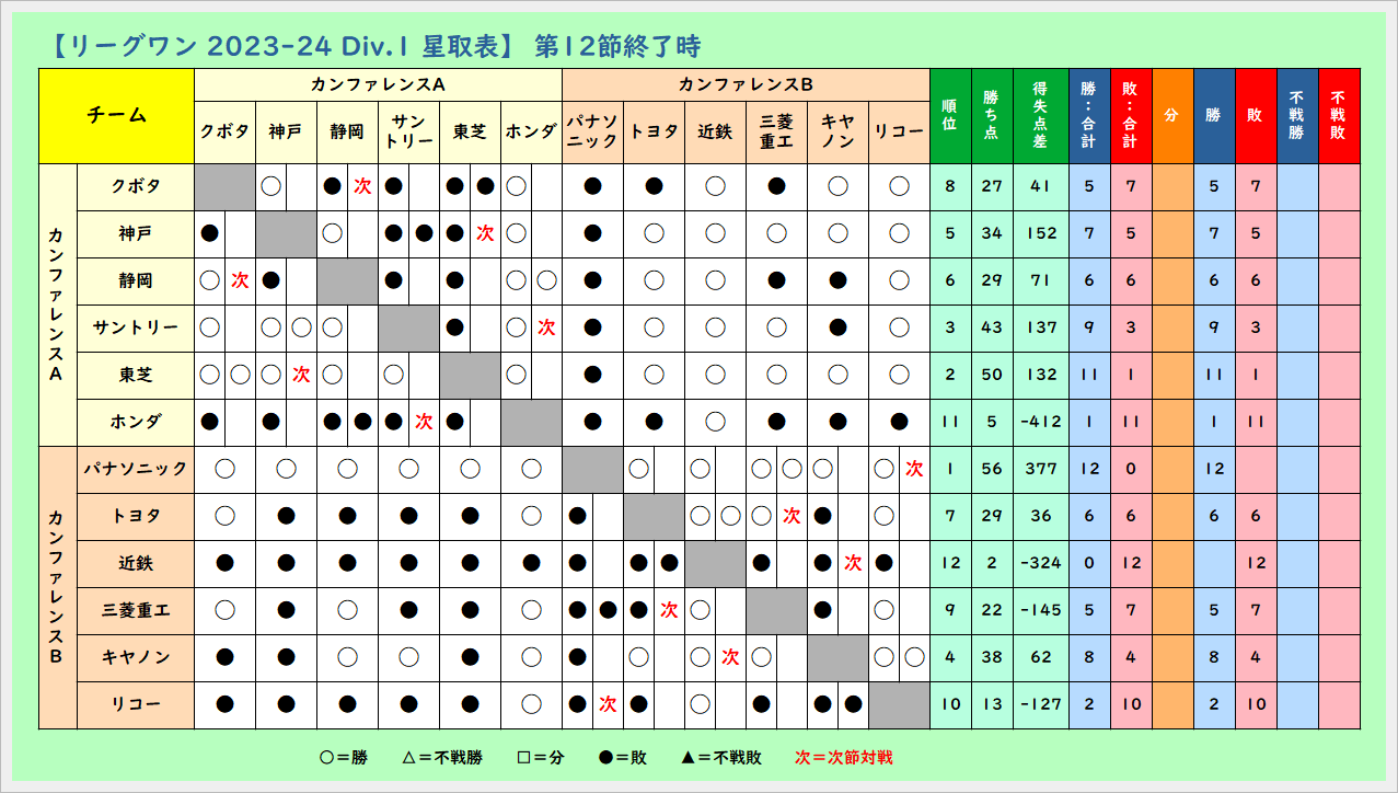 Div.1のメンツにかけても負けたくない数字ですが厳しそうなチームもありますね
