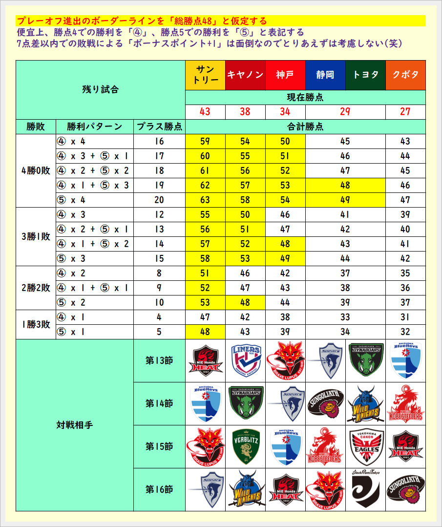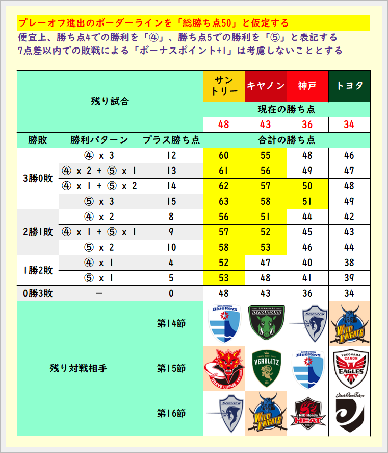 プレーオフ進出のボーダーラインを「総勝ち点50」と仮定すると