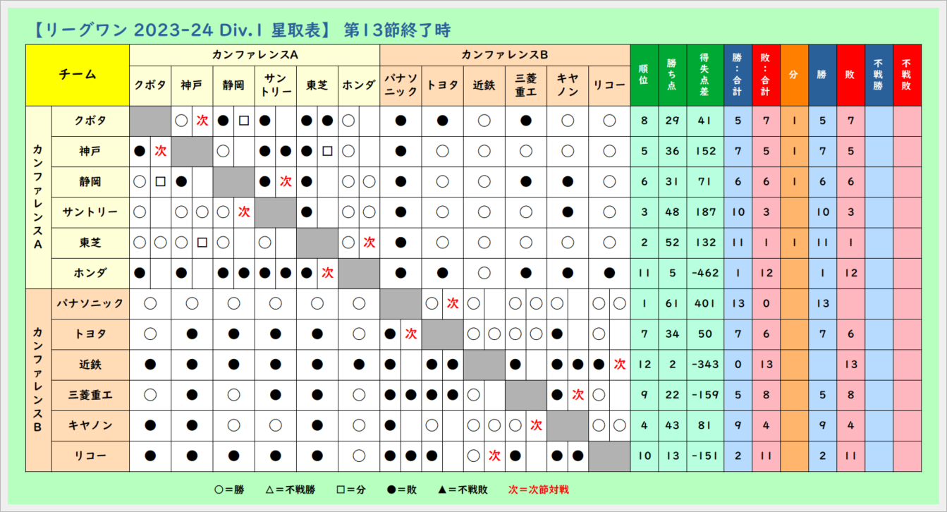 星取表 第13節終了時