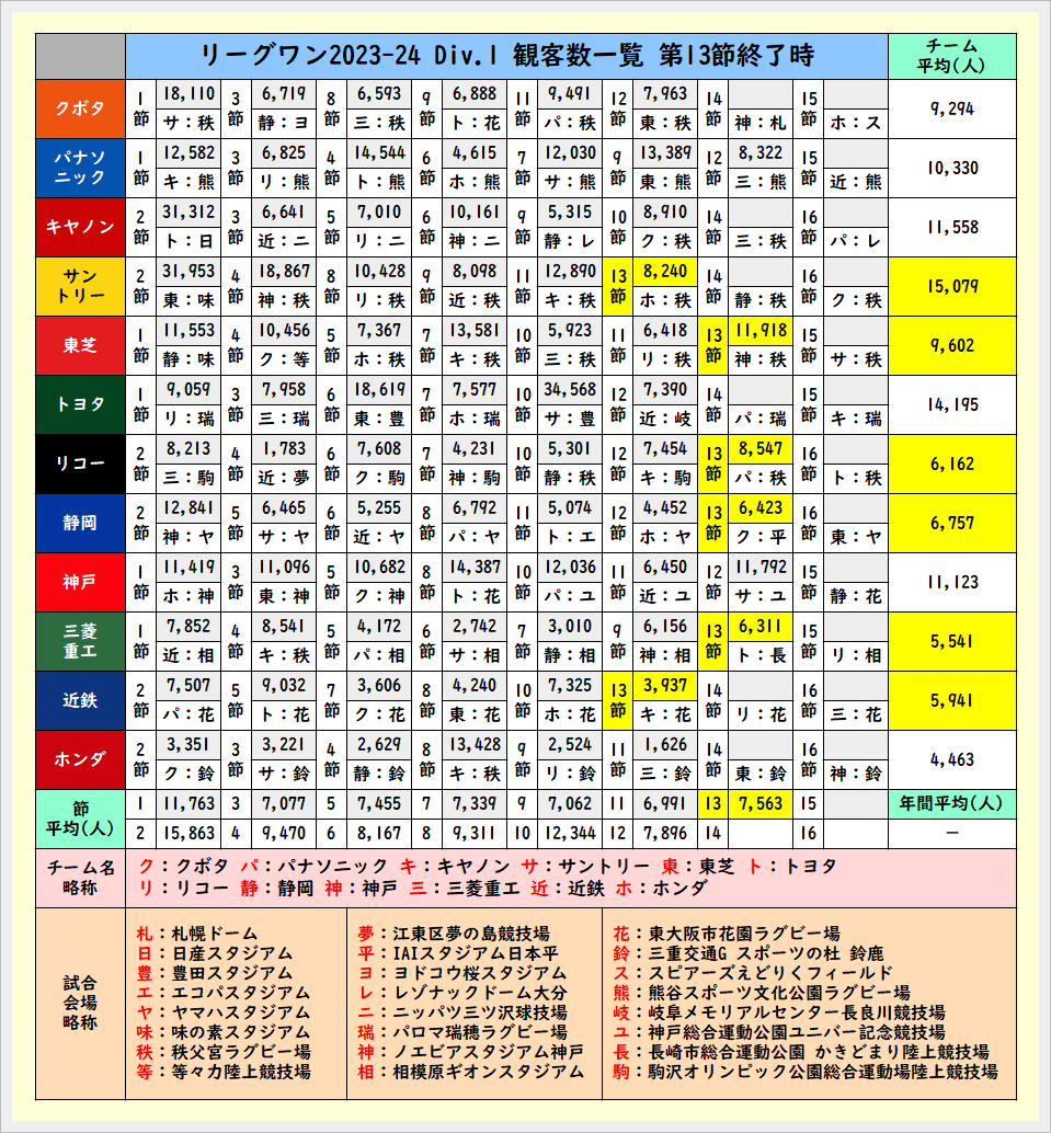 観客数一覧 第13節終了時