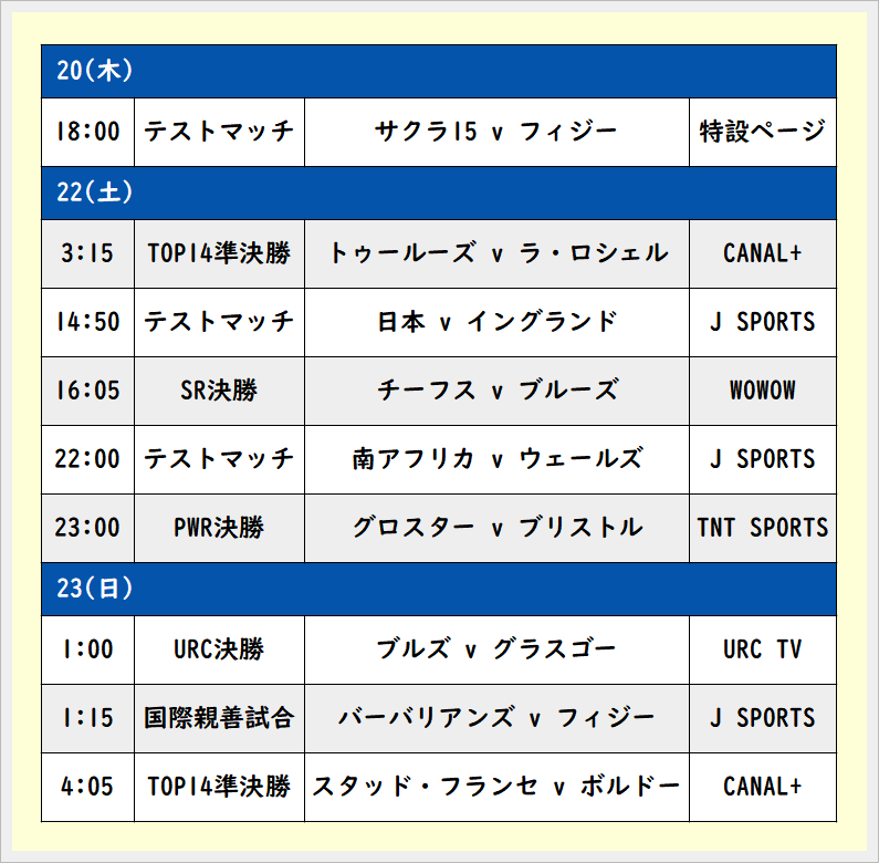 いずれにしろエディーさんも言ってますが、あくまでフォーカスは2027年ですから、初戦のイングランド戦の結果であまり一喜一憂はしないようにしたいです。とは言えテストマッチですから負けて良い訳ないですからね。