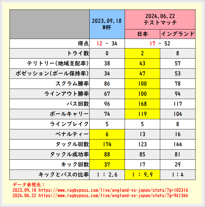 日本の去年のW杯のイングランド戦と先週の戦いを比べてみました