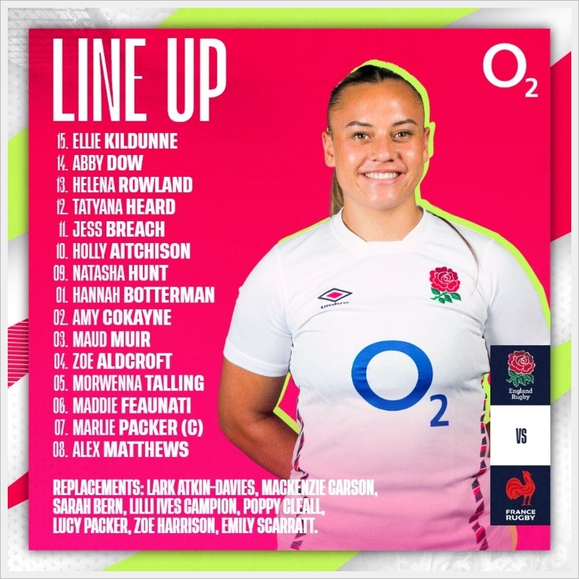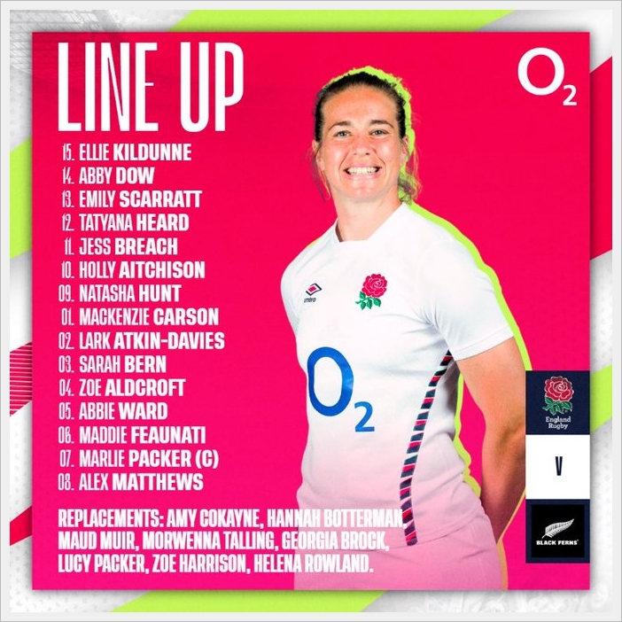 先週のイタリア戦からはフロントロー3人を替えてきたが、これは恐らくブラックファーンズの強いスクラムに対抗するためだろう。そしてロックにはアビー・ウォードが戻った。バックス陣の変更は1人だけ。ベテラン34歳のエミリー・スカーレットがエレナ・ローランドに替わりCTBに入った。