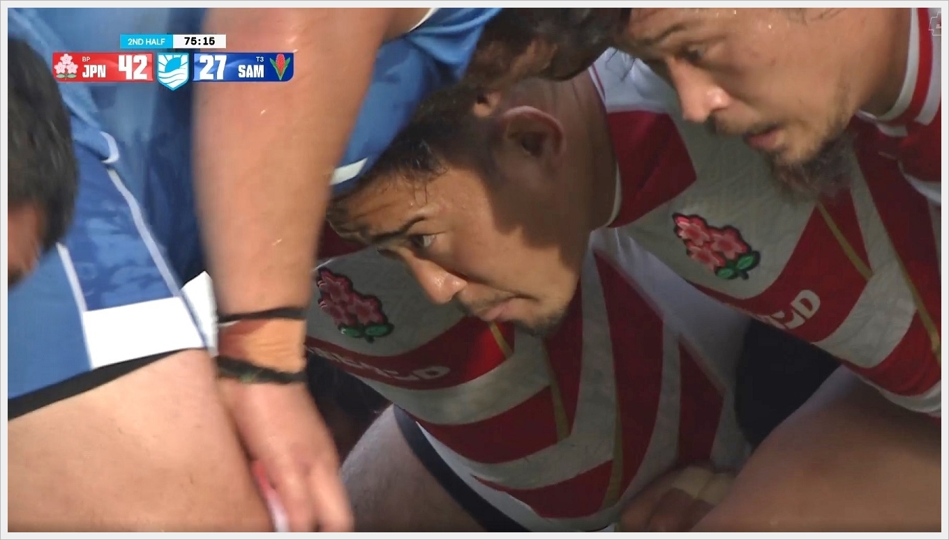 コミュニケーションミスなのか、何度もサモアに突破された。サモアはキャリー76回だがラインブレイクが8回もあった。(ちなみに日本はキャリー140回、ラインブレイク7回)