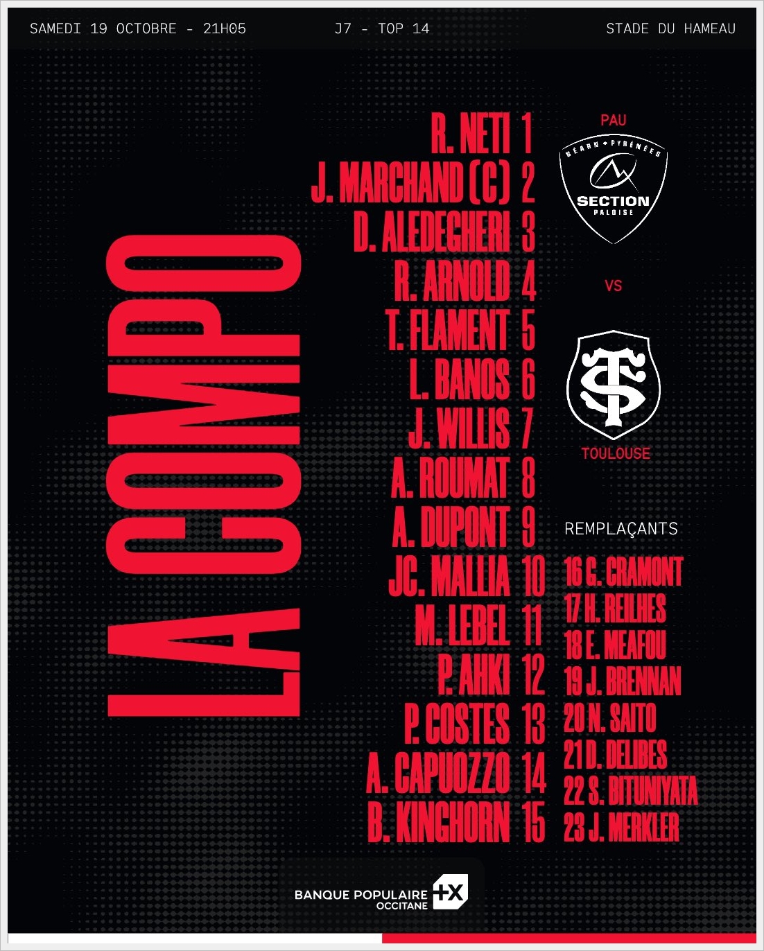 スタッド・トゥールーザンが月曜日に発表したところによると、先発のロマン・ヌタマックはふくらはぎの筋断裂で3~4週間離脱する見込み。土曜日のクレルモン戦(48-14)でスタッド・トゥールーザンが勝利した試合の39分、トゥールーズの先発選手は足を引きずりながらプレーフィールドを離れ、自陣ゴールに横たわり、右足の甲を押さえた。