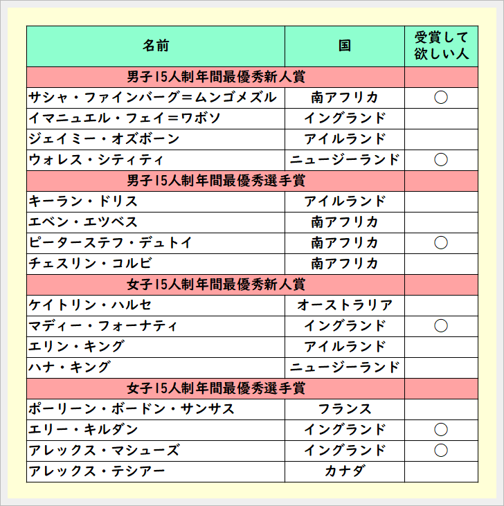 今回のアワードでウォレス・シティティ(ニュージーランド)の最優秀新人賞と同じくらい嬉しかった。