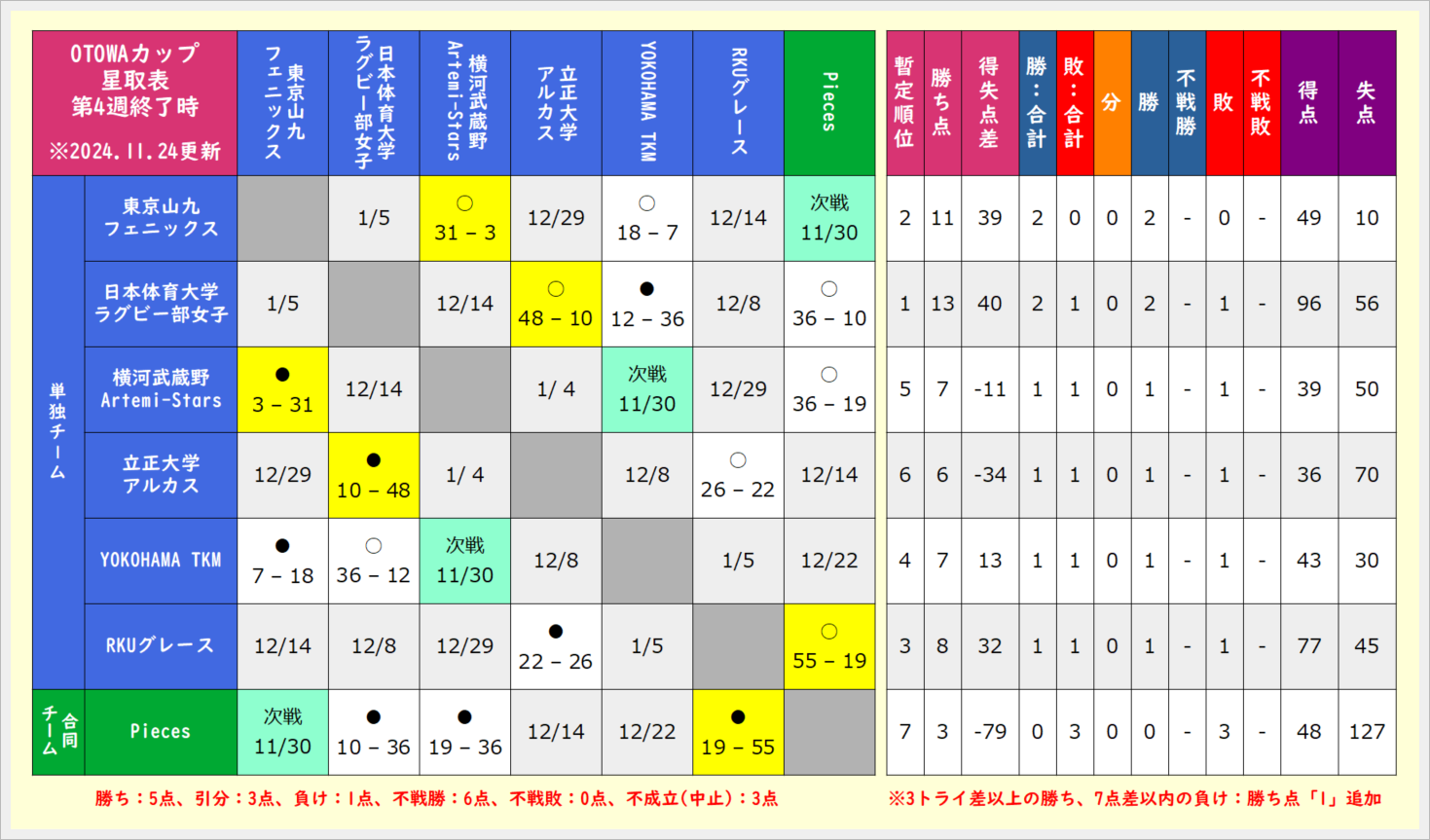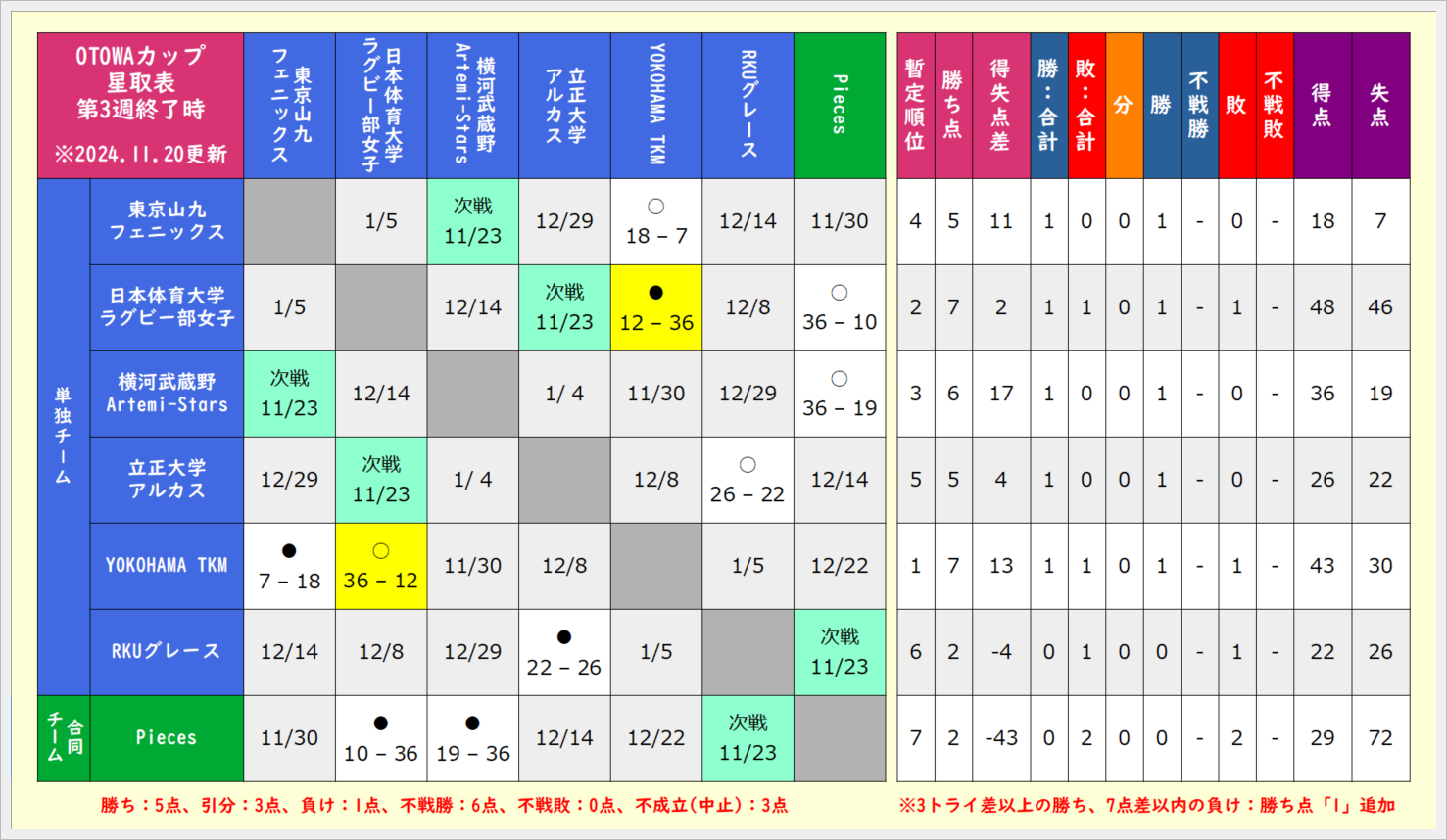 ・東京山九フェニックス 31 - 3 横河武蔵野アルテミスターズ