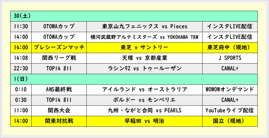 今日は嫁さんと女子ラグビーを2試合(OTOWAカップ)観てきました。