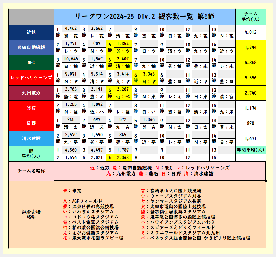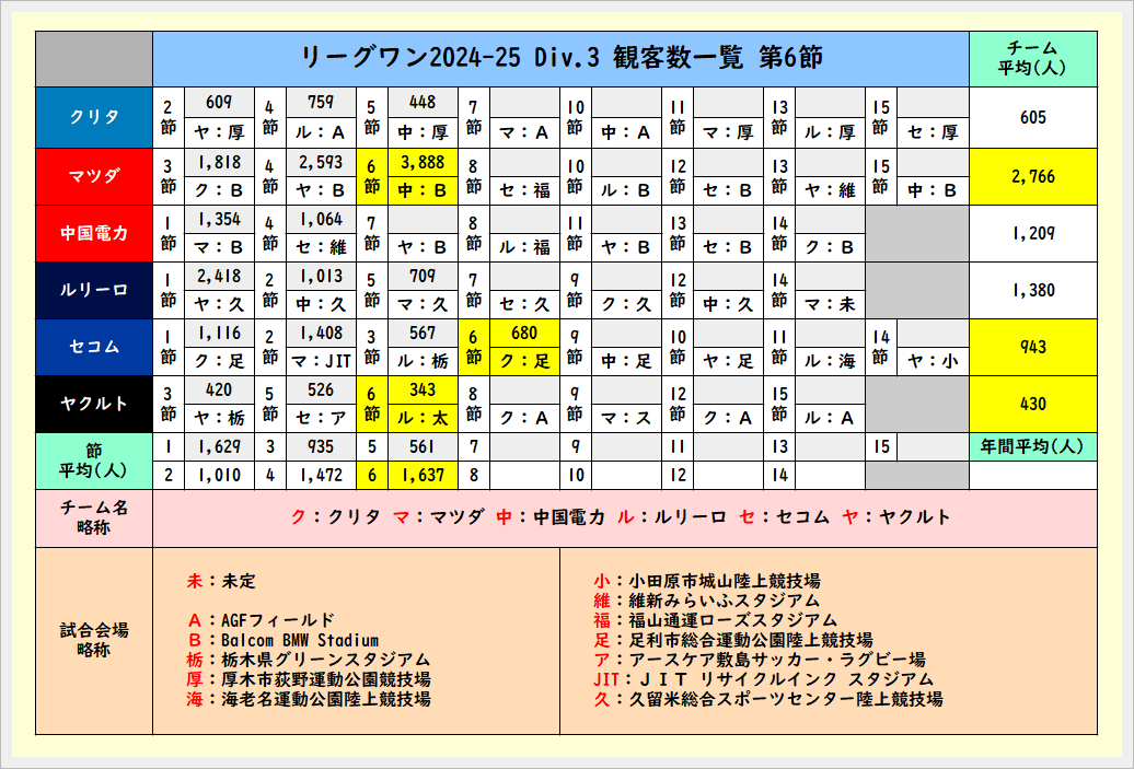 第6節終了時の観客数一覧
