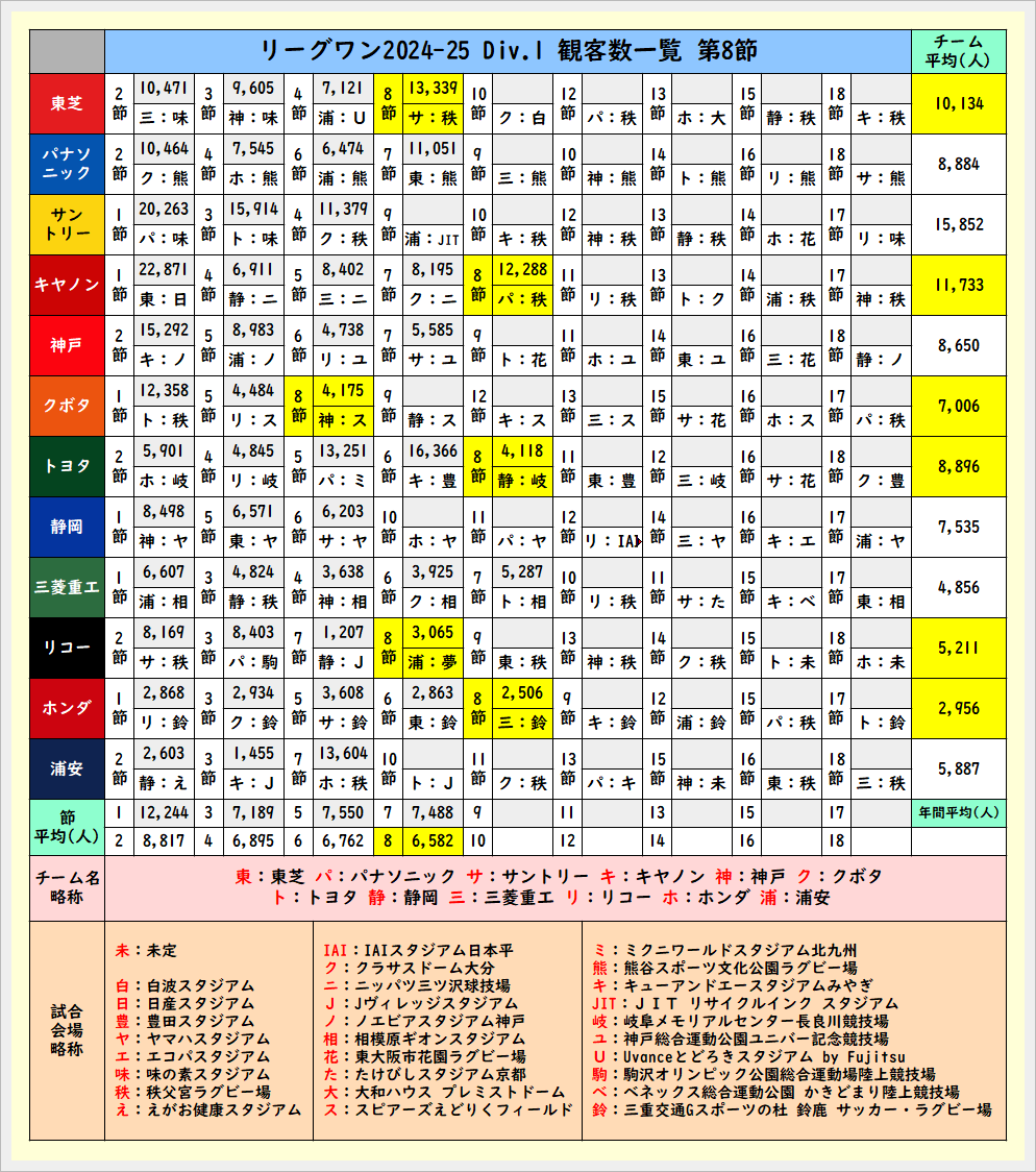 第8節終了時の観客数一覧
