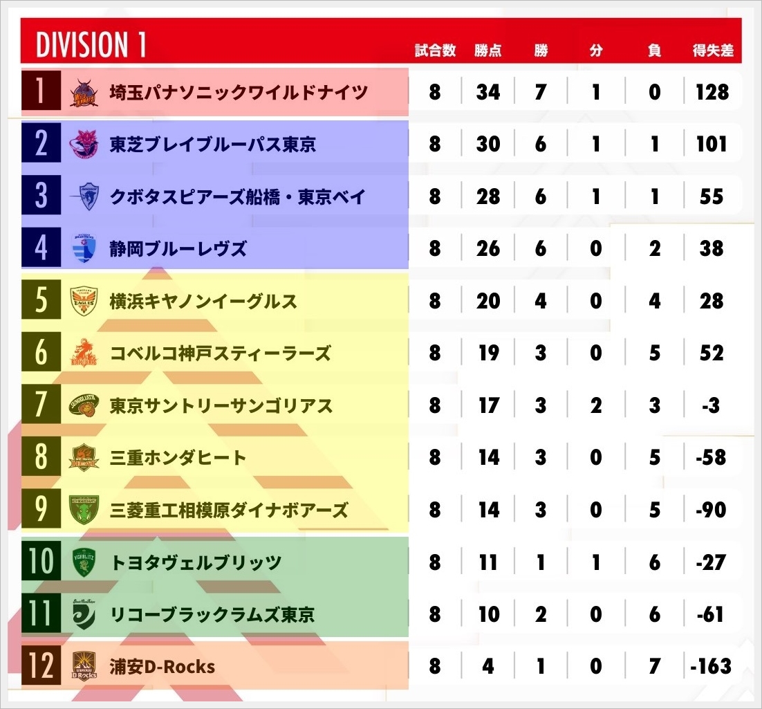 奇しくもDiv.1の12位の浦安とDiv.2の1位のレッドハリケーンズもNTT関連会社だ。