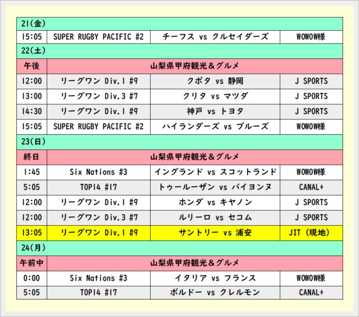 ただ試合展開は全然のんびりしてられなかった(笑)。サントリーは相手に合わせる、というか何というか、自ら接戦したくて接戦してるみたい。勝ったからいいけど。浦安には悪いけど、今日くらいは楽勝して欲しかった。さすがにサム・ケレビに抜かれ過ぎでしょ(笑)。でも弟子の中野 将伍が頑張ったからチャラかな。