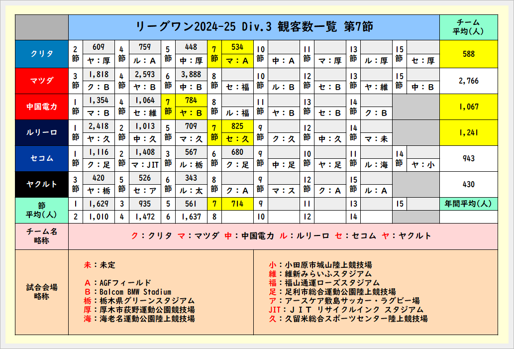 第7節終了時の観客数一覧