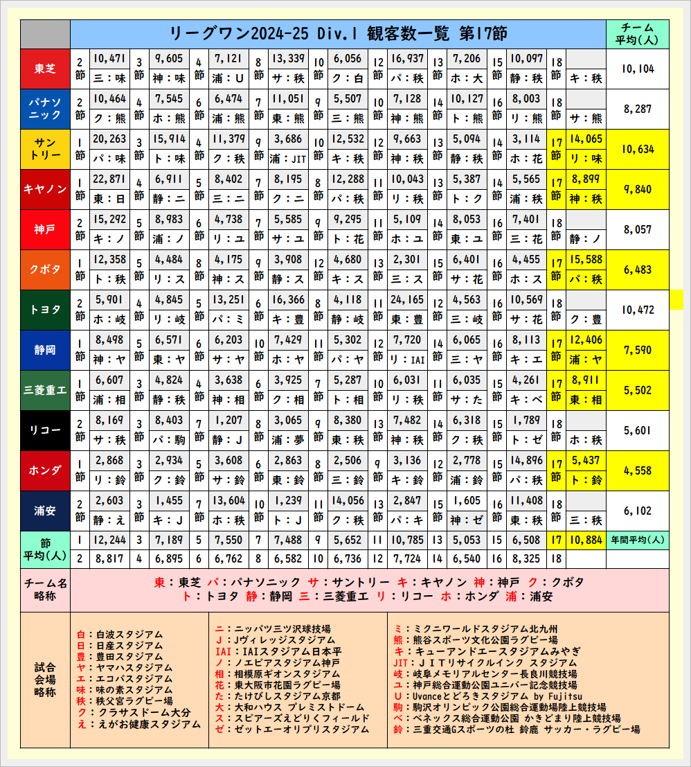 第17節終了時の観客数一覧