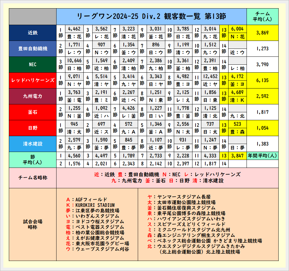 第13節終了時の観客数一覧