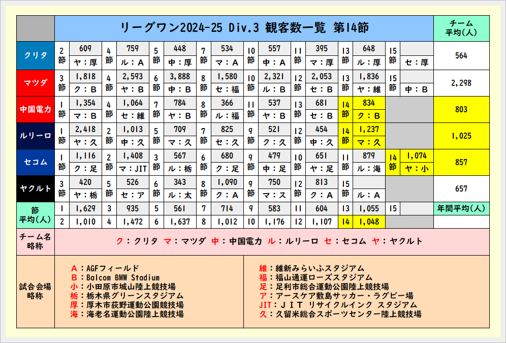 第14節終了時の観客数一覧