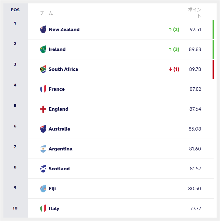 代わりにアルゼンチンに完勝したオールブラックスが、2021年以来となる世界ランク首位を奪還した。