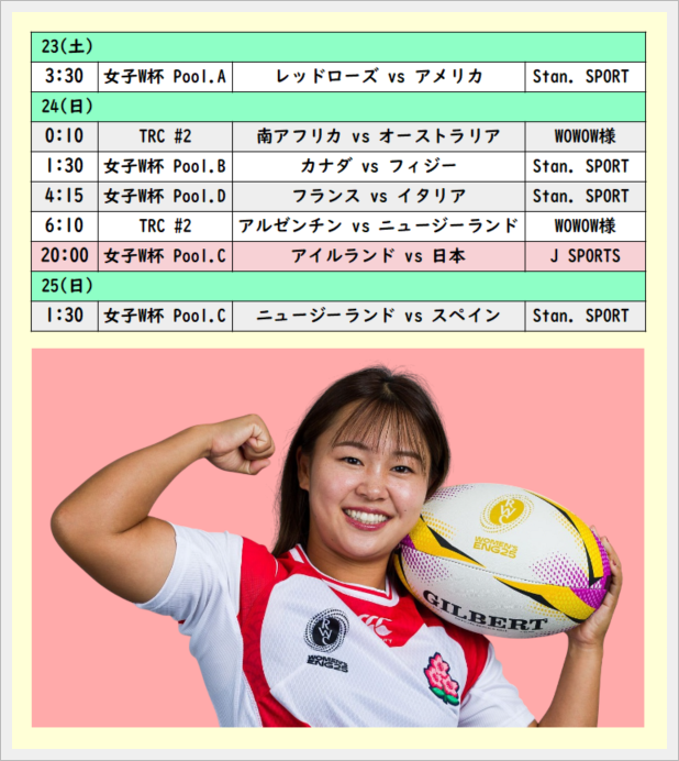 優勝候補筆頭のレッドローズとラグビー界のアイコン、イローナ・マーのUSAとの対戦ですから盛り上がり必至です。