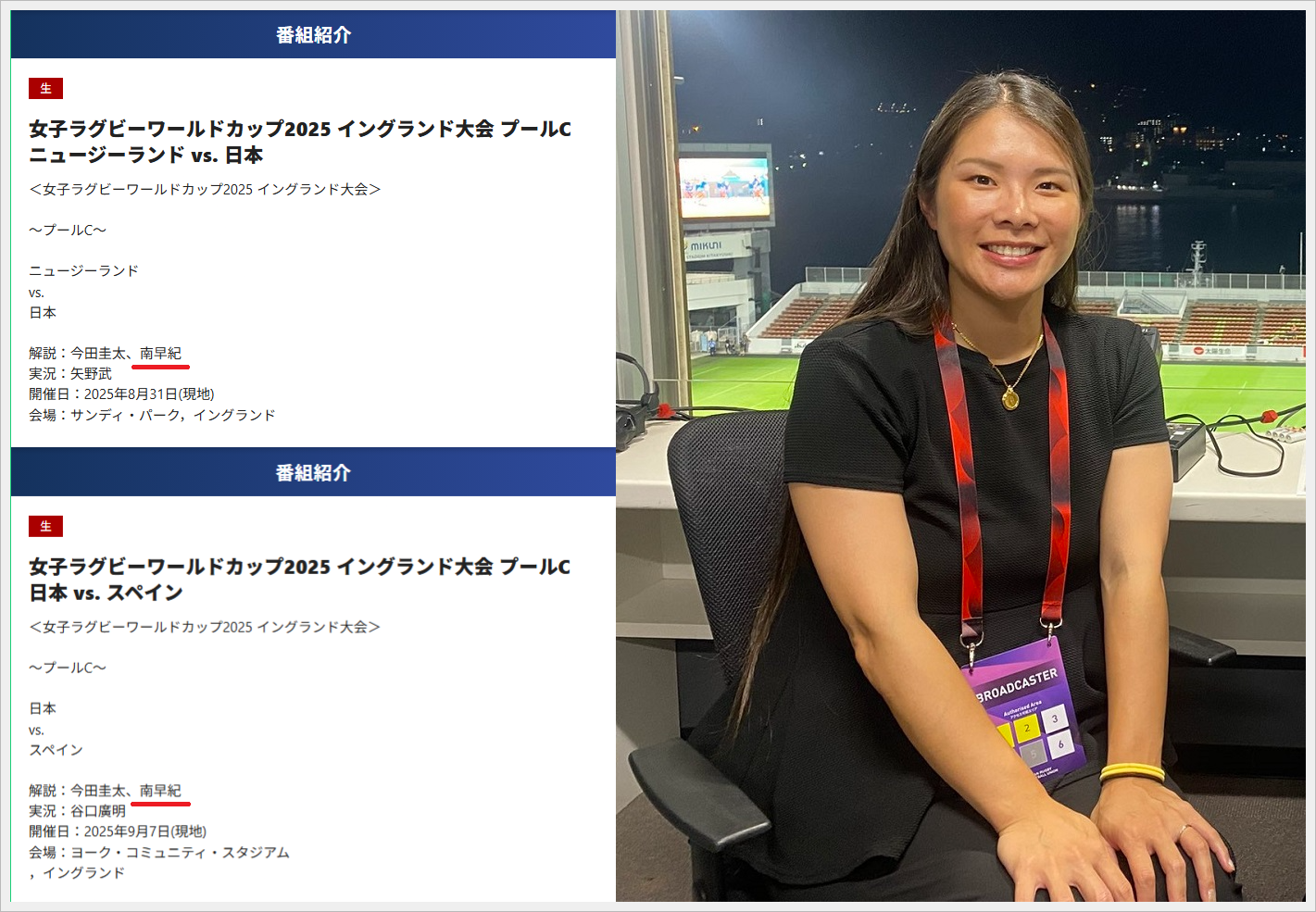 泣いてた赤ちゃんも思わず黙り込む、言わずと知れた女子ラグビー界に君臨する女帝。一旦、代表引退を発表したものの、まだまだ全然できると引退を撤回。スペイン戦に途中出場し挨拶代わりのトライ。なんかの試合で1人で7トライ獲ったの観たぞ。