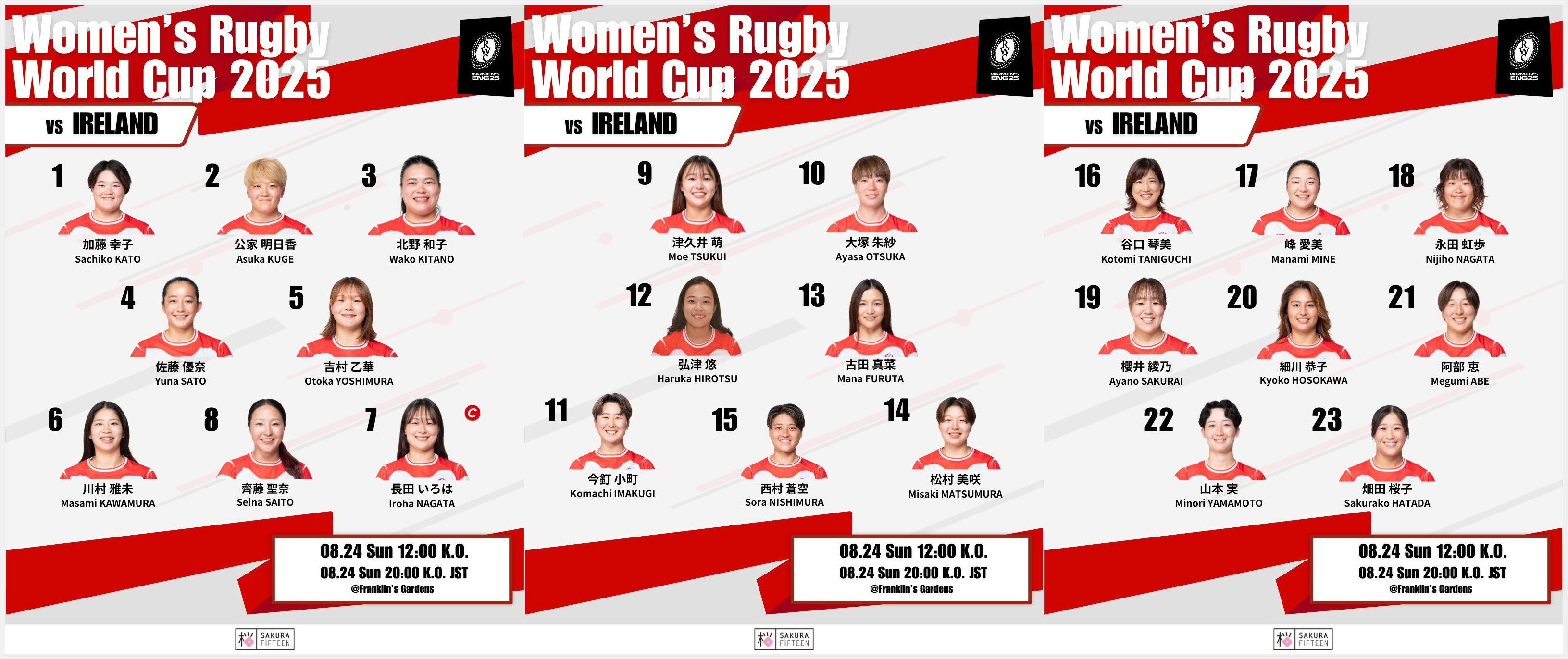 サクラ15にとって救いなのは、昨年のWXV1でのブラックファーンズ撃破の立役者FLイーファ・ウェーファーが膝の手術からのリハビリでまだダブリンに残ってることですね。