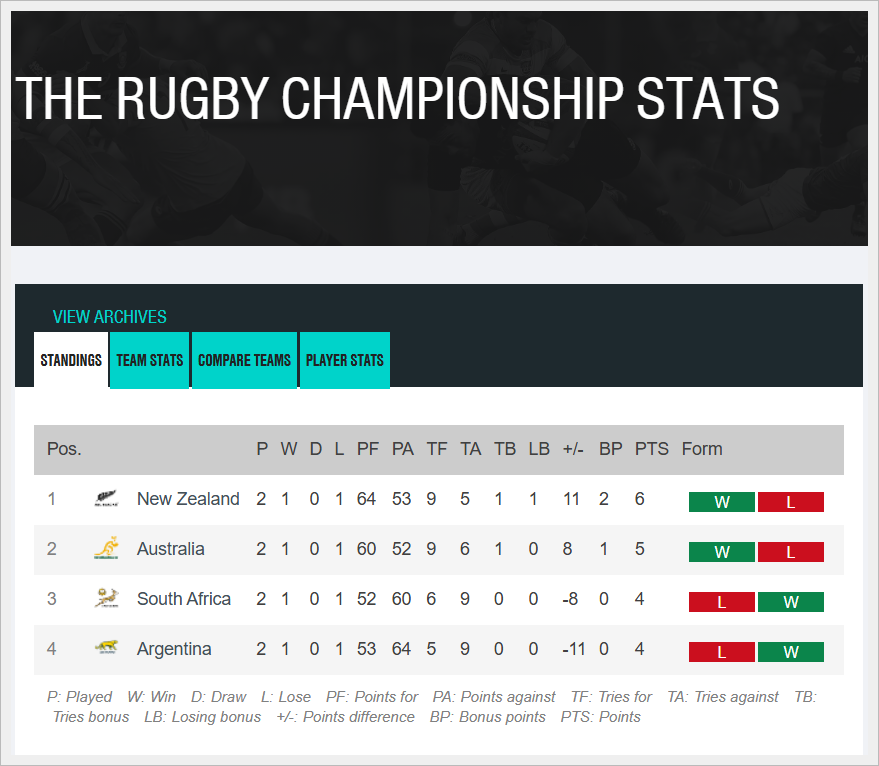 TRC Round1 を終え、ワラビーズに大逆転を喫した南アフリカが世界ランク首位から陥落。ホームで16点差以上負けの為、最大のポイントを減らし3位に落ちてしまった。