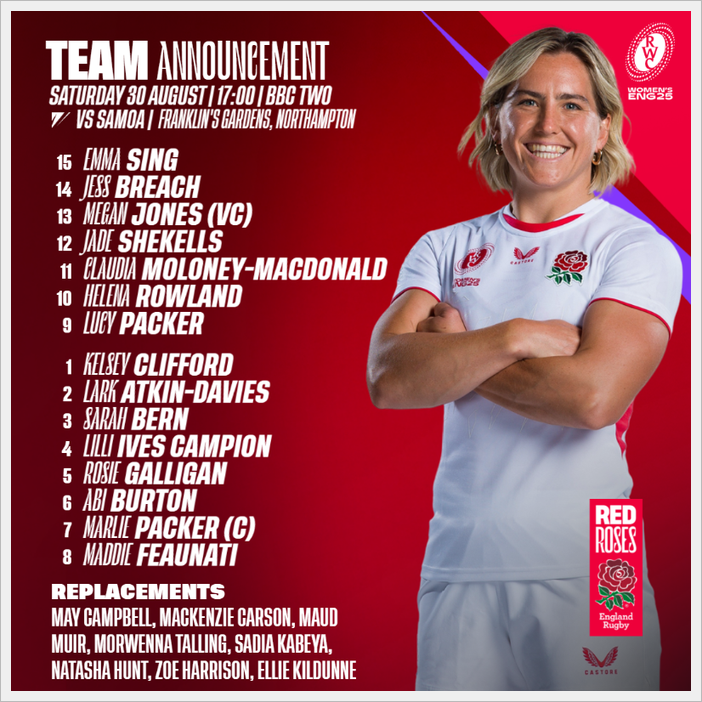 たった2試合で、恐らく怪我?のSOホーリー・エイチソンを除く、今回のW杯スコッド全員を出場させるんだってさ。おい!サクラ15のHCよ、聞いてるか!!これがW杯決勝を見据えたレッドローズの戦略。そしてそれを実現させる選手層。