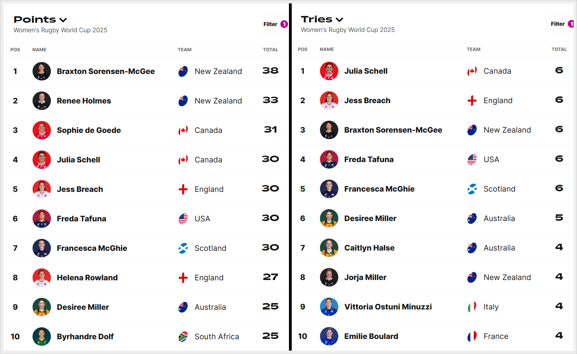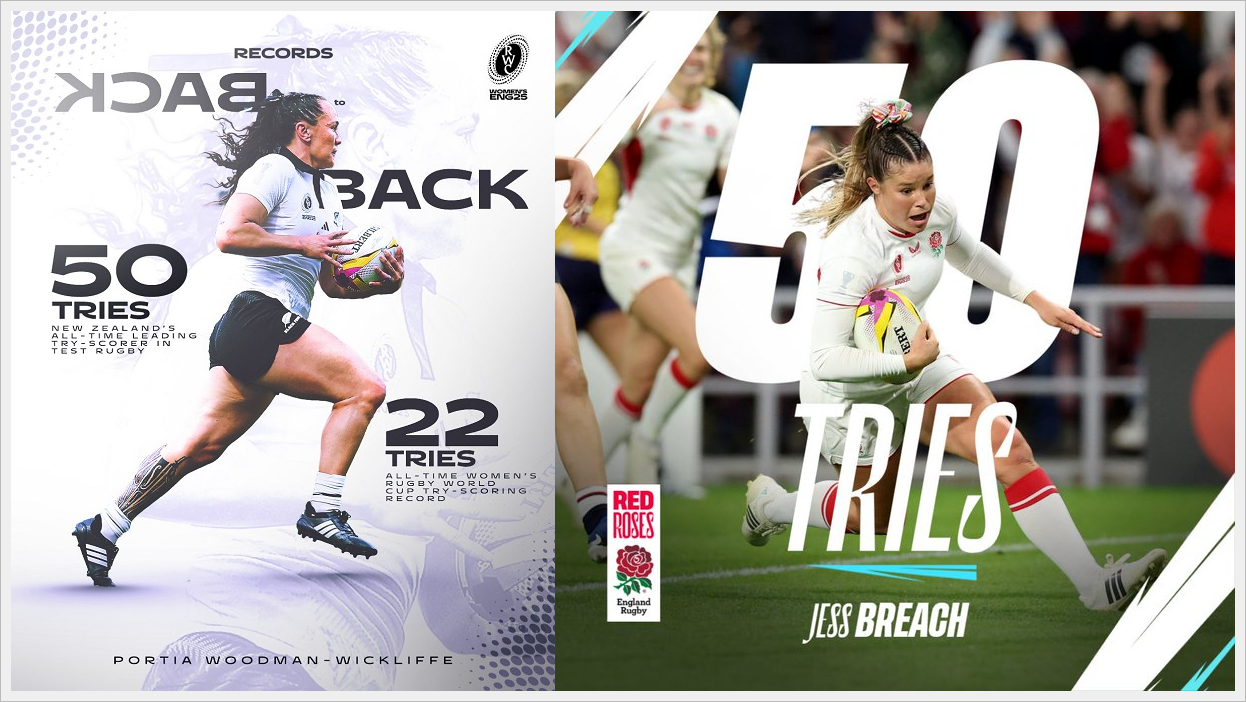 先週のサモア戦でハットトリックを達成し、代表通算50トライを達成したジェス・ブリーチ(写真)。2017年のカナダ相手のデビュー戦でいきなり6トライをマークしてから8年後の記録だった。今週も期待してるぞ!