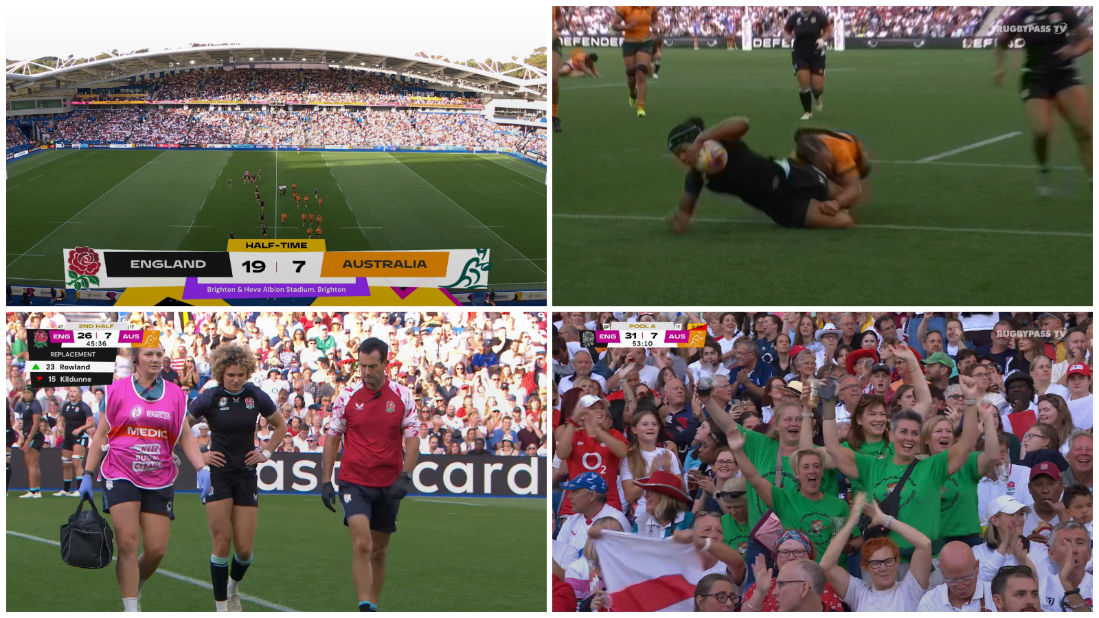 試合中、ドラムの音が鳴ってるなぁと思ったら、叩いてたのはレッドローズの2人でした。脳震盪でスタンドダウン中のFBエリー・キルダンとレッドローズの中でもノリが良くて踊りの上手いLOリリー・アイヴス・カンピオン。W杯ならではのシーンだった。